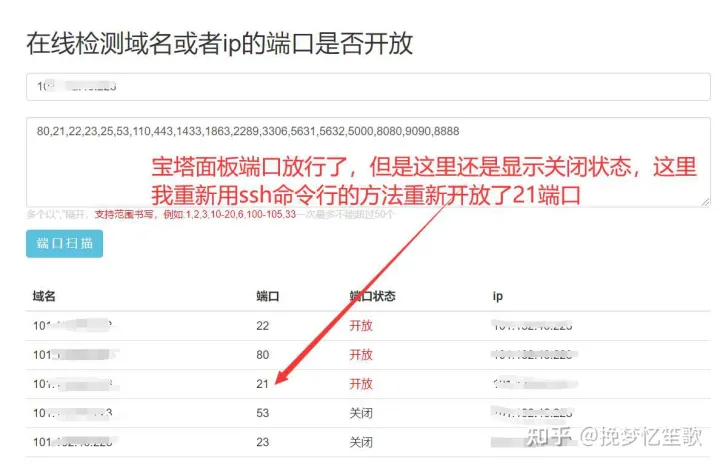 有时候你不清楚宝塔面板的端口是否放行了,你可以用网络端口扫描工具来检测,这个更能直观的清楚哪个端口究竟有没有开放。
