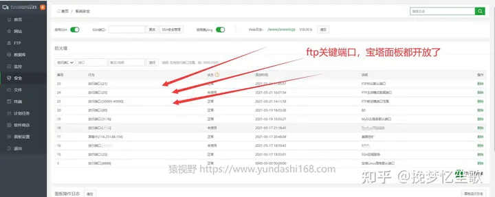 第二点:去宝塔面板观察ftp服务是否开启,很明显,我开启了ftp服务。结果还是没有解决我的问题。