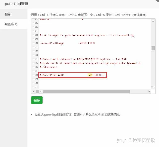 6.修改ftp配置文件 将ForcePassiveIP前面的#去掉 将192.168.0.1替换成你服务器的外网IP