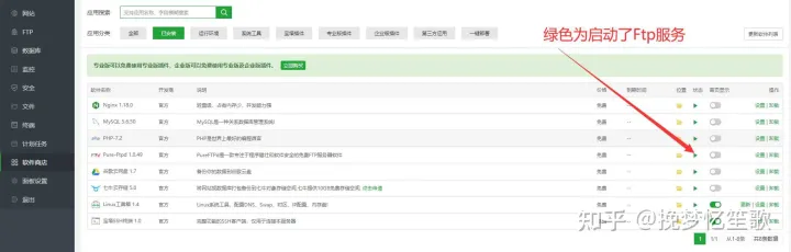 这样的再去宝塔面板后台查看ftp服务是否能启动,结果发现能启动起来。这样就解决了这个问题。【宝塔面板FTp空间服务启动成功】