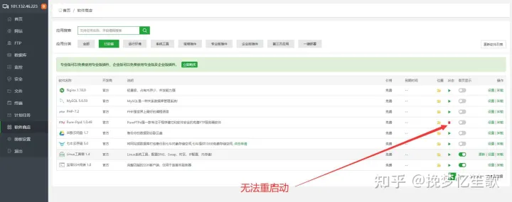我的宝塔面板FTP插件启动标识一直是红色标识(停止状态),卸载插件重装也是一样的。所以去网上查找解决方法。